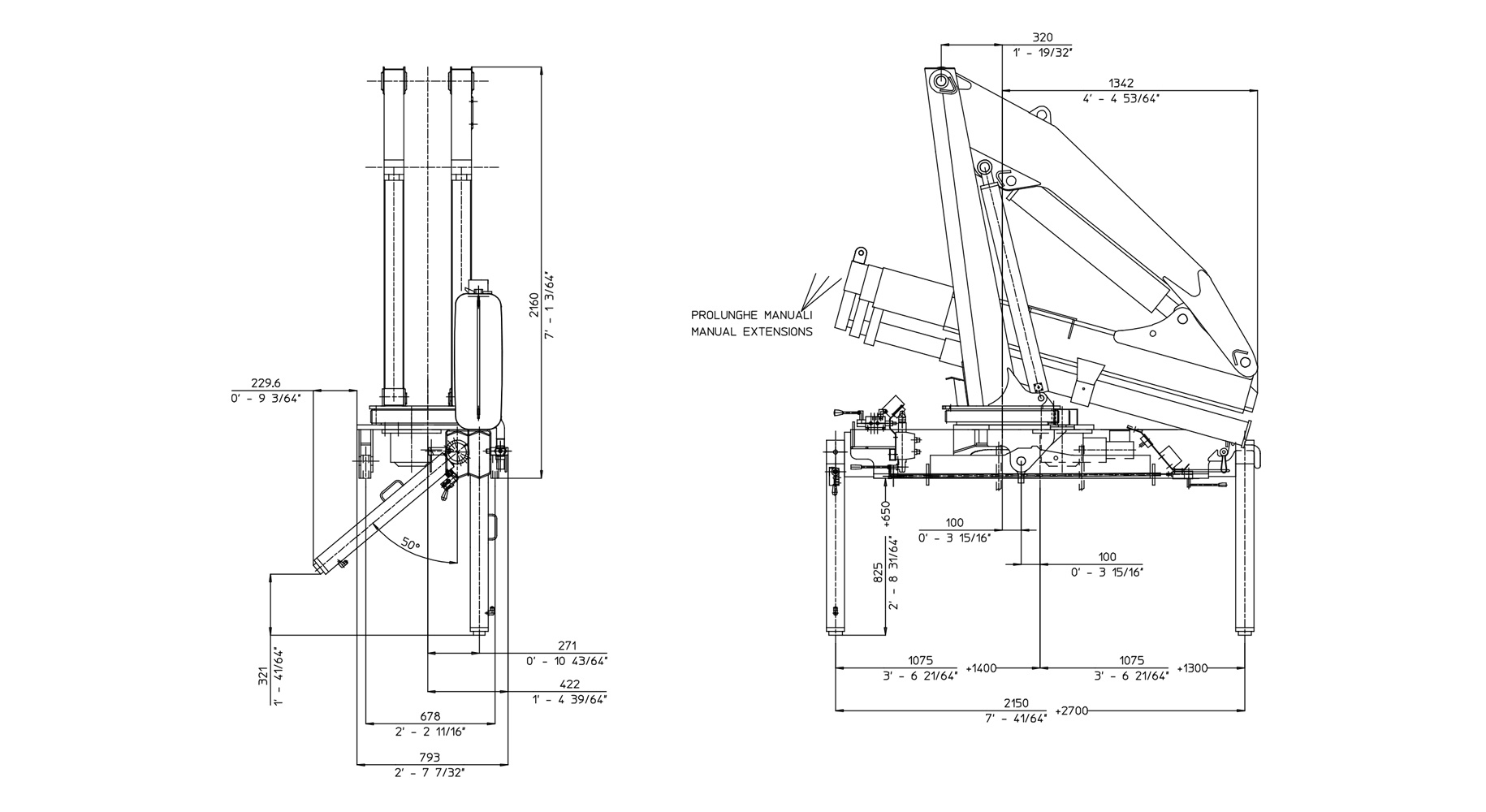 | Виліт із ручними подовжувачами | 12700 mm | 41'8" |