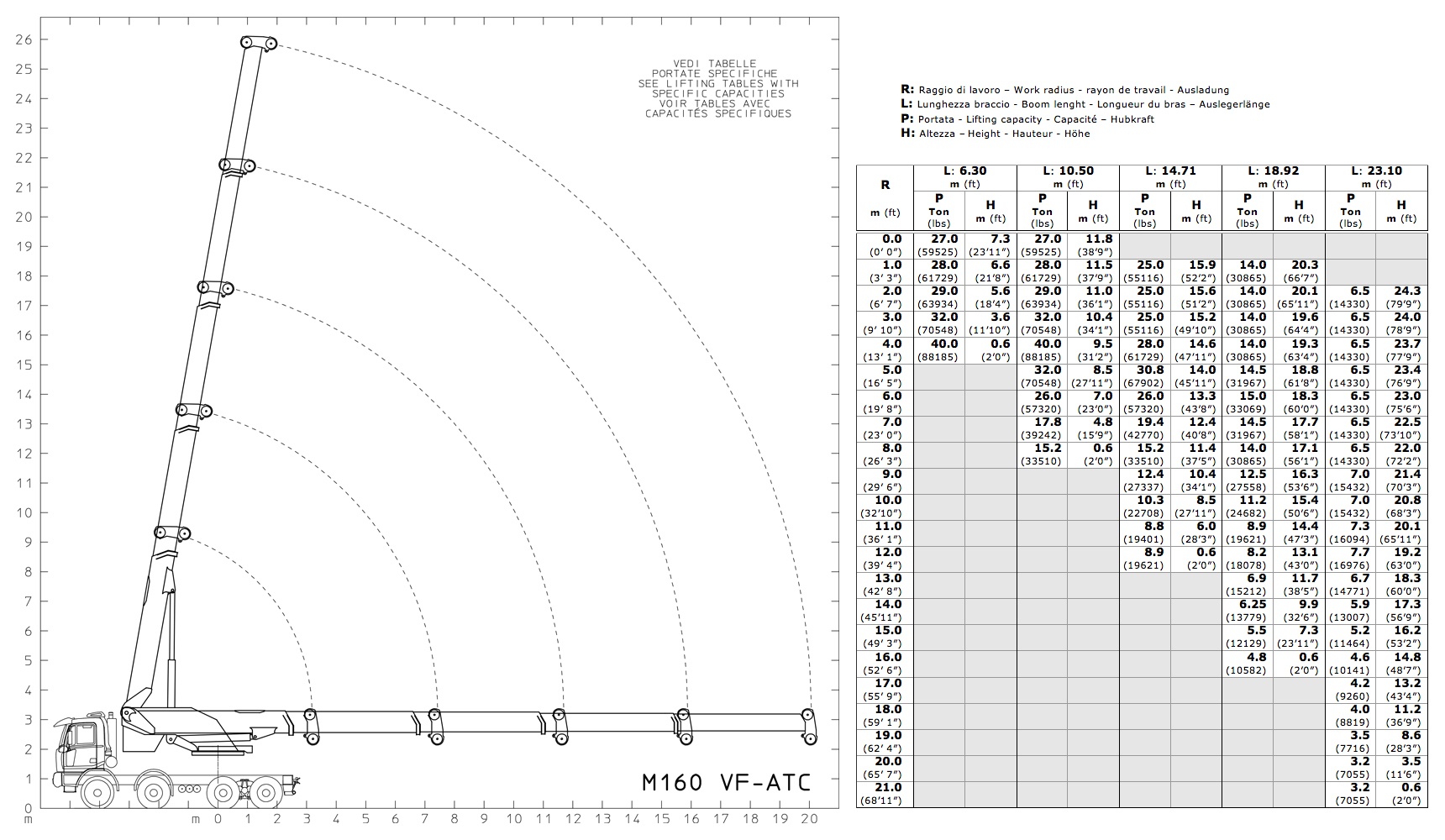 | Гідравлічний виліт | 20040 mm | 65'9" |