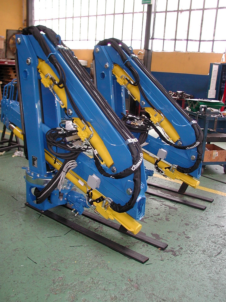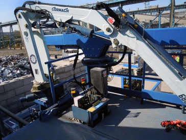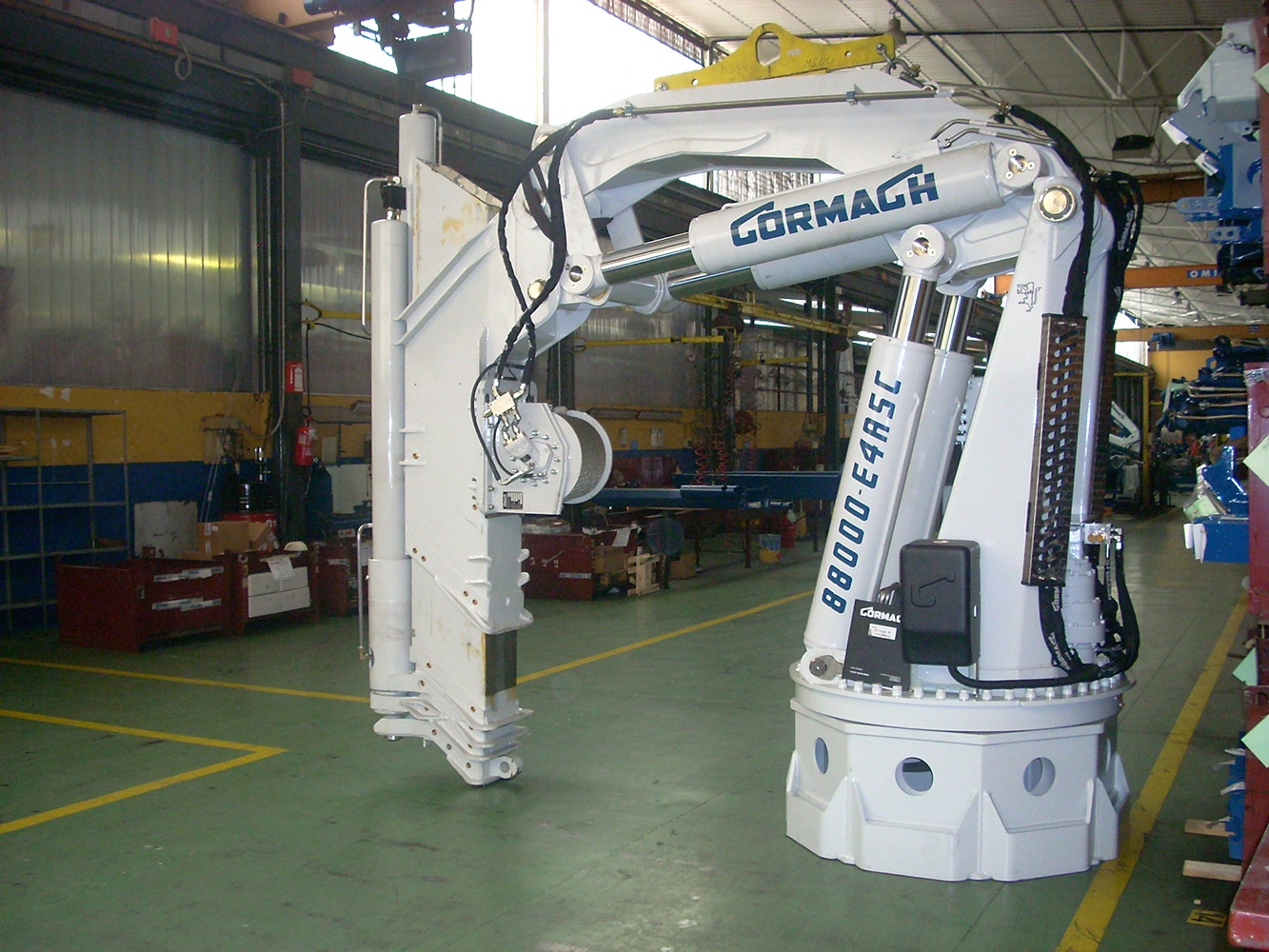 Компанія Cormach також вже кілька років спеціалізується на будівництві стаціонарних кранів. Ці крани кріпляться до будь-якої нерухомої поверхні, землі або судна, не потребують використання стабілізаторів та мають робоче місце.